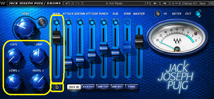GATEがゲート、COMPがコンプ、LOWS1、HIGHS1がEQになります。