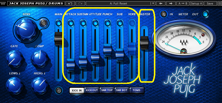 MASTERは、メインセクション、センターセクション、全てが合わさった、音の音量調整。