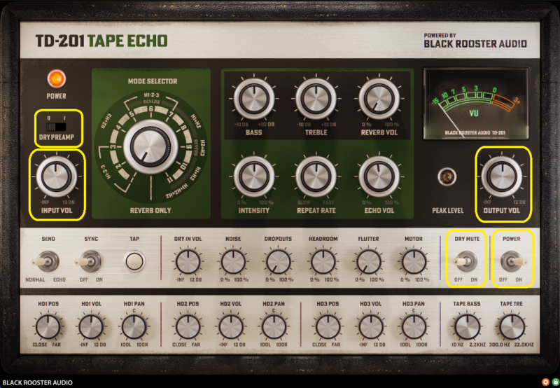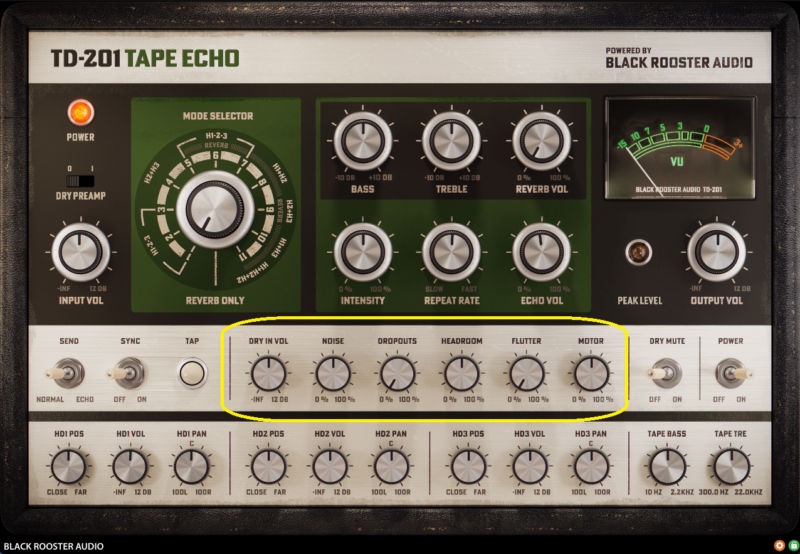 DRY IN VOL以外は、実際のテープ感を出したかったら使うつまみ。