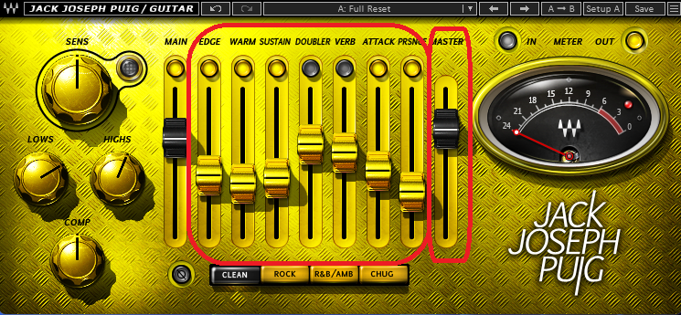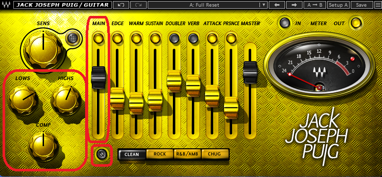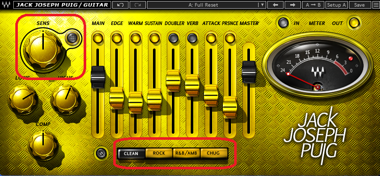 CLEANはクリーン、ROCKはロック、R&B/AMBはリズム&ブルースとアンビエント、CHUGはハードロック寄りって感じ。