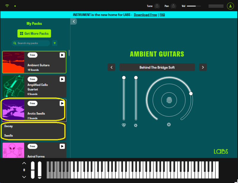 一番上の「Ambient Guitars」だと、10 Soundsとなりますね。
